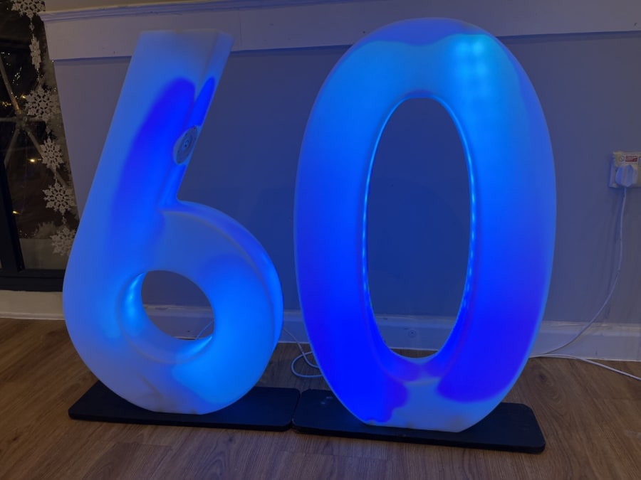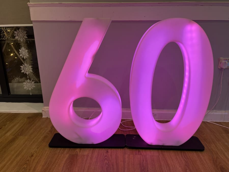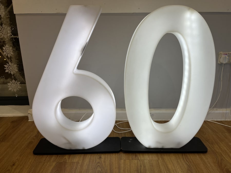 LED Light Up Number 60 for hire in Buckinghamshire, Berkshire, Middlesex and Oxfordshire.