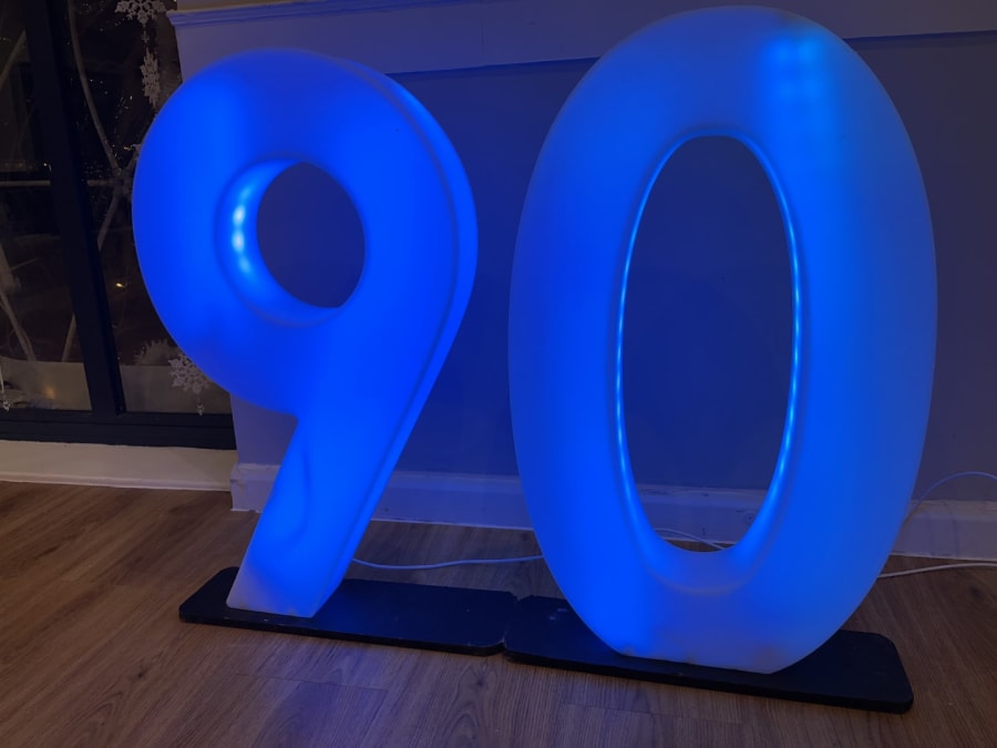 LED Light Up Number 90 for hire in Buckinghamshire, Berkshire, Middlesex and Oxfordshire.