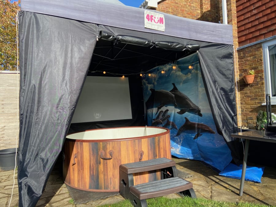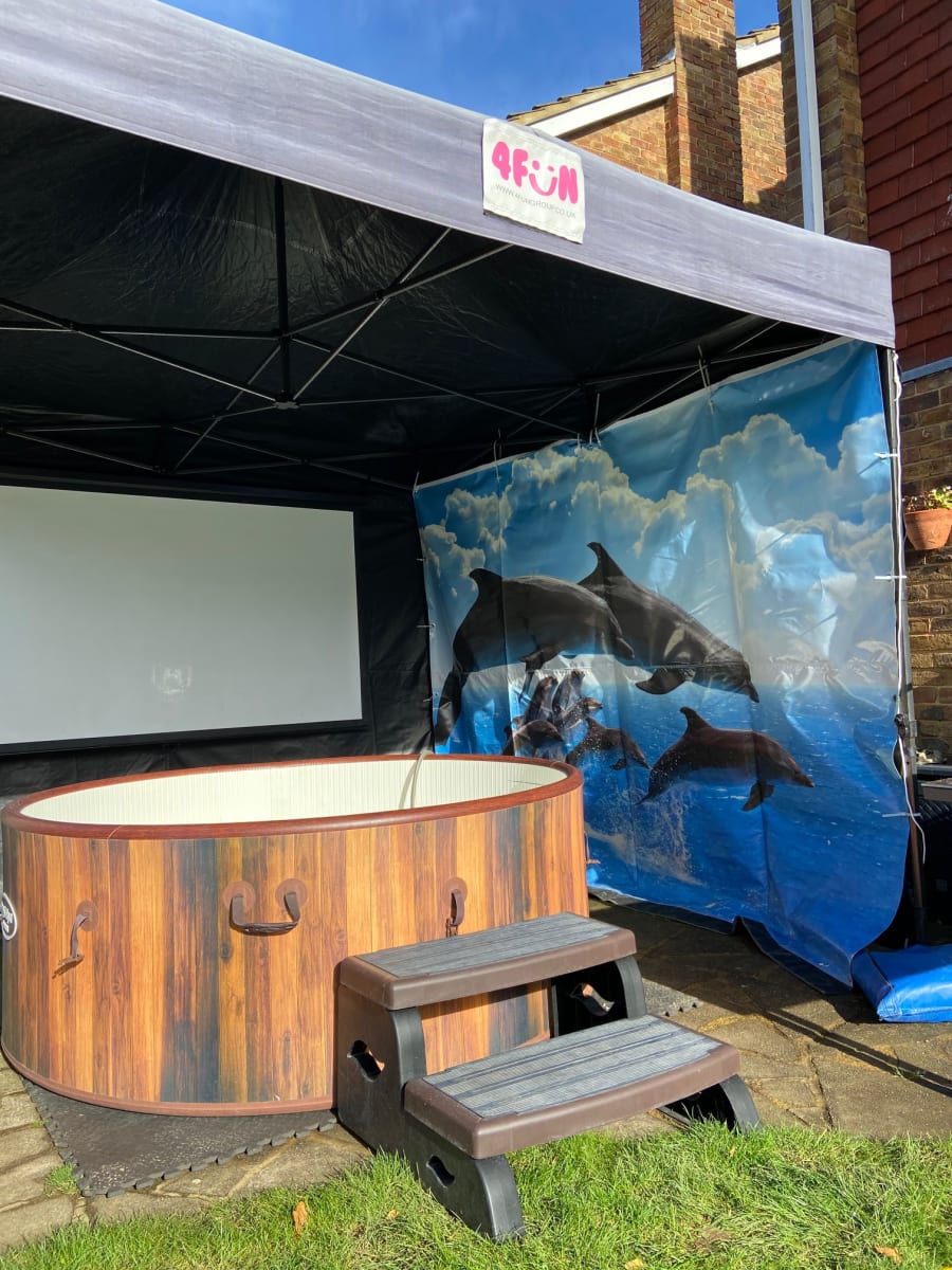 Swim with the Dolphins Hot Tub and Gazebo Package for hire in Buckinghamshire, Berkshire, Middlesex, Oxfordshire.