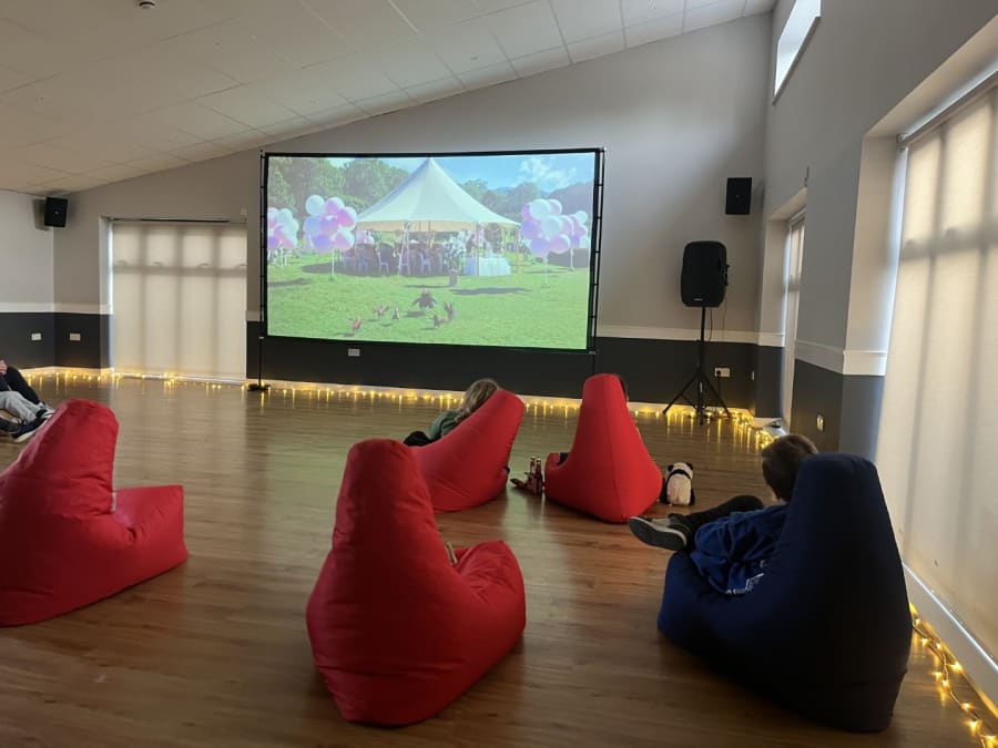 Indoor Cinema with Screen, Projector, Speaker and Fairy Lightsfor hire in Buckinghamshire, Berkshire, Middlesex and Oxfordshire.