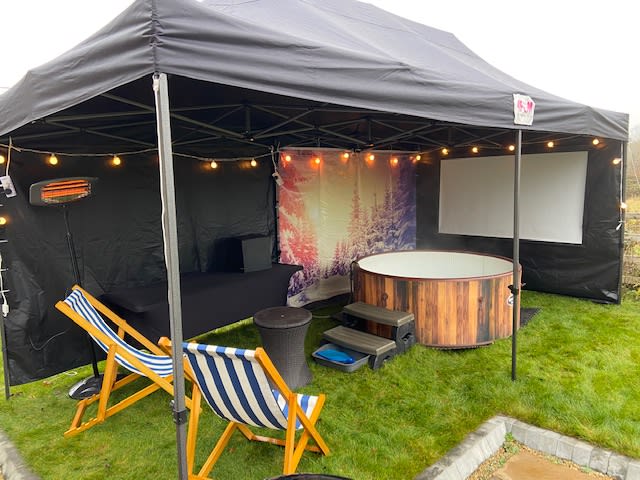 Hot Tub Cinema with 6M x 3M Gazebo (LARGE) for hire in Buckinghamshire, Berkshire, Middlesex, Oxfordshire.