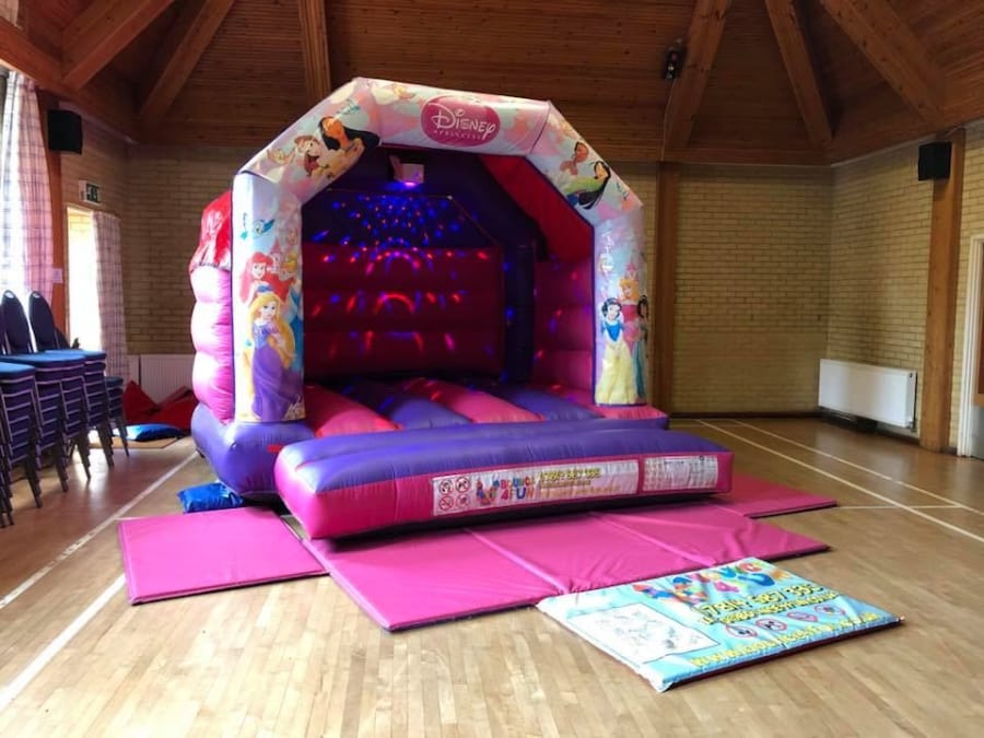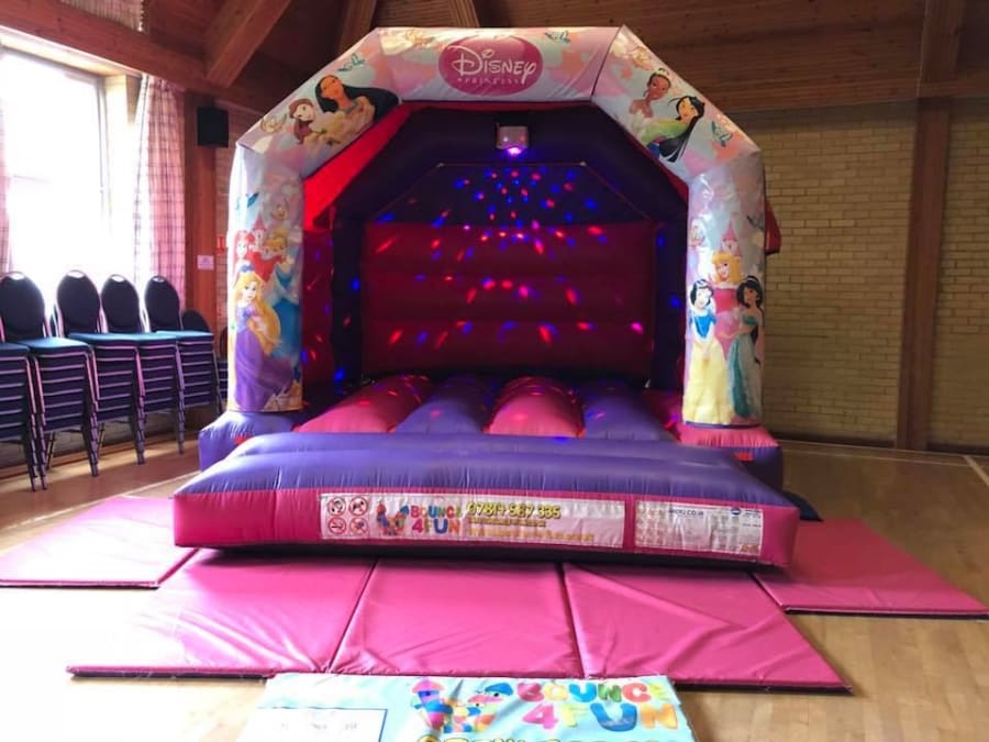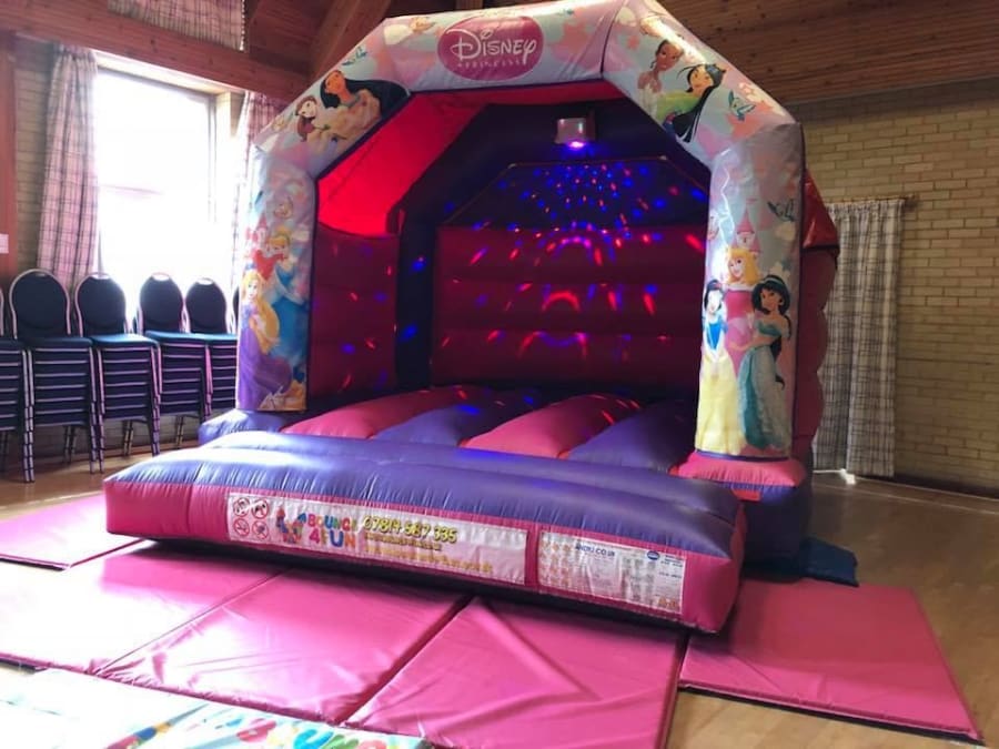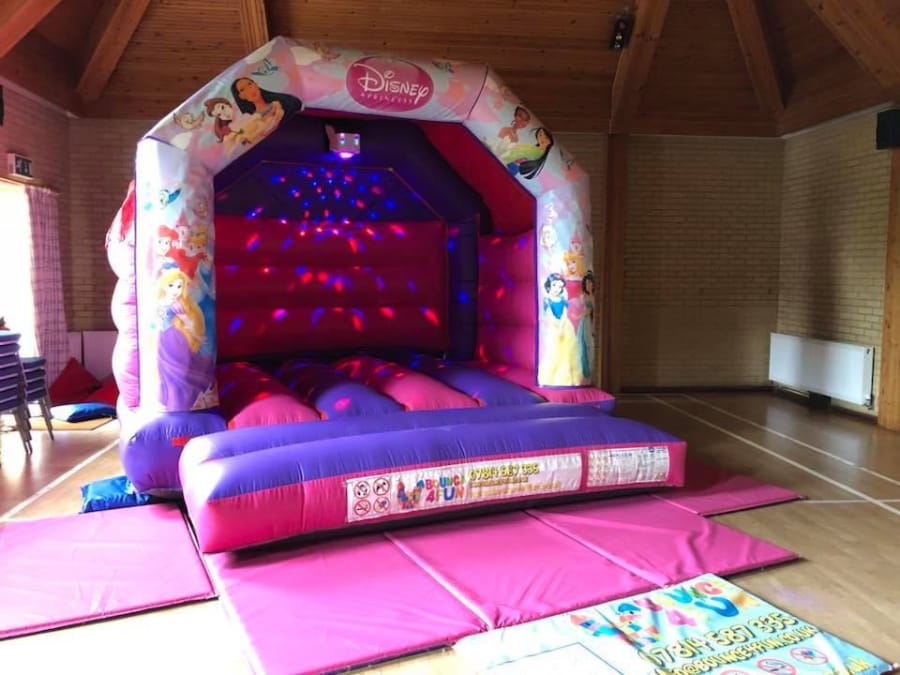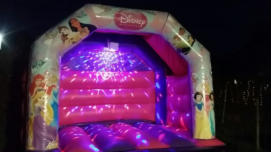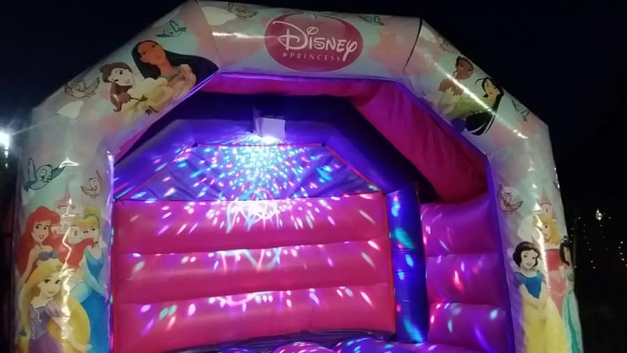 Princess Bouncy Castle 12ft x 15ft with Disco Lights and Music for hire in Buckinghamshire, Berkshire, Middlesex and Oxfordshire.
